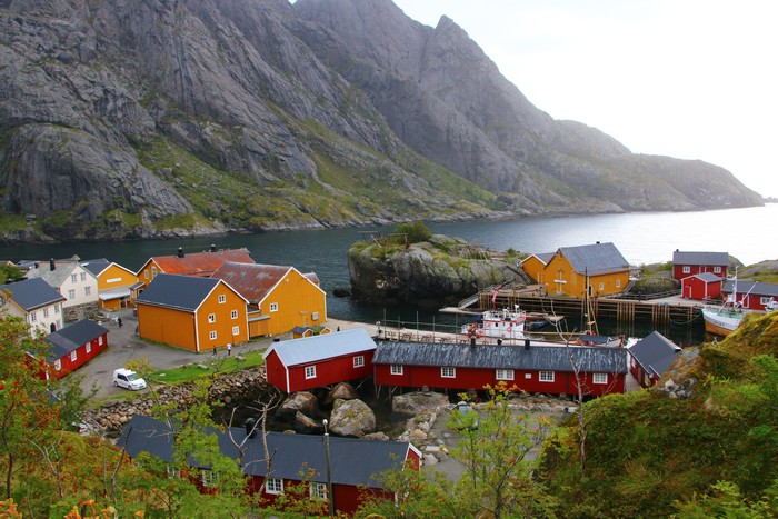 Restauré pour recevoir les touristes. Ses maisons jaunes et rouges sont bâties au cœur d’un profond fjord. Autrefois prospère grâce à la pêche à la morue, Nusfjord est aujourd’hui plus un musée qu’un village, comptant moins d’une centaine d’habitants.