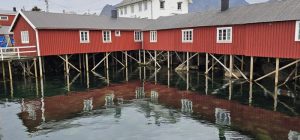 Les morues séchées clouées sur la façade des maisons, suspendues sur les séchoirs en bois ou accrochées aux rambardes en bois témoignent de ce passé florissant à l’époque où le village de Nusfjord vivait presque uniquement de la pêche à la morue.