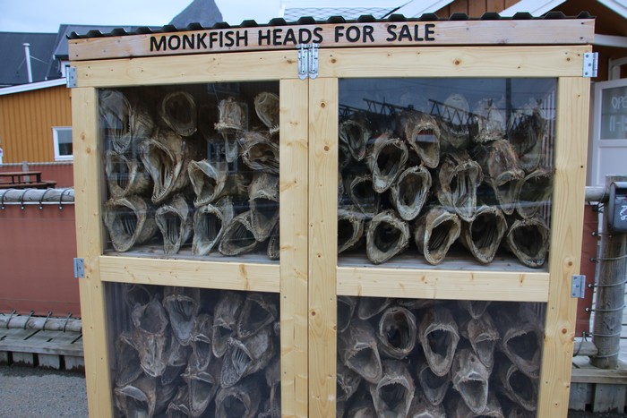 Il y a ici une quantité impressionnante de « Stockfish » les séchoires à poissons pour nous touriste. Il est fréquent de trouver ces fameux cadres en bois où sont pendus le corps ou la tête des cabillauds pêchés en mer.