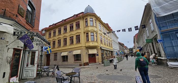 Est le vieux quartier de la ville, une sorte d’oasis marquée par des avenues bordées d’arbres, des places historiques et des maisons d’ouvriers. De nombreux bâtiments sont construits dans le style dit « landshövdingehus », typique de Göteborg.