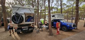 Bon nous voilà à la fin de la journée, il est temps de regagner un point de bivouac, mais la région est très touristique, les petits campings sont pris d’assaut. Nous allons donc exceptionnellement sur un « Giga camping » façon camping paradis…