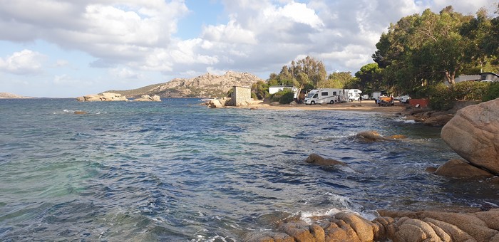 Nous voilà arrivée sur la Maddalena, mais il est déjà tard.Nous allons donc prendre le premier camping dans la ville , surtout que l’orage approche très vite.
