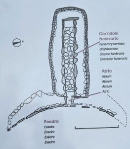 l’ensemble comprend un couloir funéraire rectangulaire long de 9,00 m et de largeur 1,10 m.