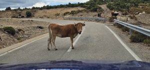 Nous allons maintenant couper par une route montagneuse entre Olbia et Abratax. Les villages ce font rares et les seuls habitants semblent être à quatre pattes.