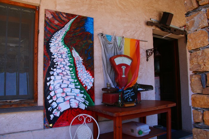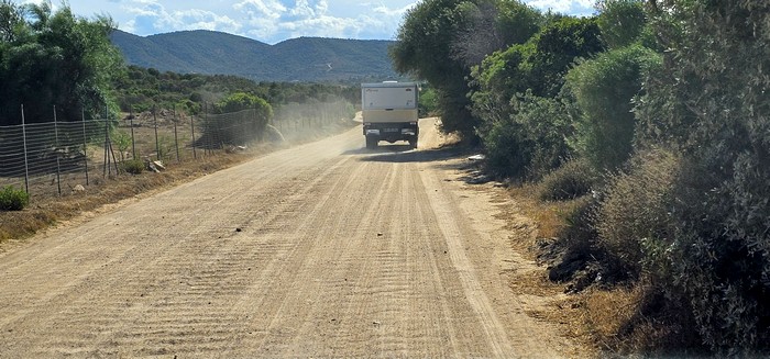 Nous allons maintenant couper par une route montagneuse entre Olbia et Abratax. Les villages ce font rares et les seuls habitants semblent être à quatre pattes.