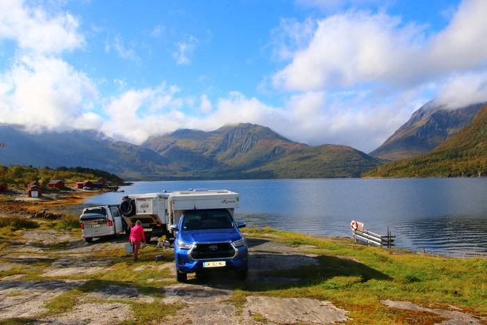 Mais dans le doute direction le garage Volkswagen pour un passage à la valise afin de rassurer Momo pour la suite du raid. Nous laissons donc l’équipage du van pour aller faire un petit tour dans la région. En route pour l’église en bois de Kabelvag, le paysage est de toute beauté.