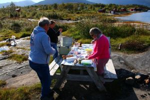 Reprenons la route en direction de deux petits villages de pêcheurs très typiques des Lofoten avec leurs maisons sur l’eau. Aujourd’hui le ciel est d’un bleu azur juste la température est un peu fraîche, ce qui nous donne de magnifiques photos.