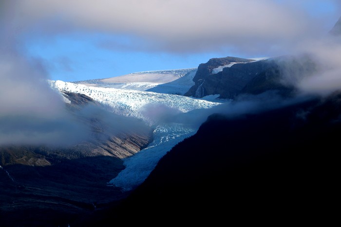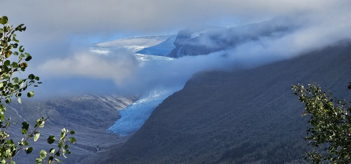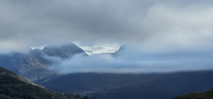 Le temps commence légèrement à s’améliorer et laisse entrevoir de magnifiques paysages de montagnes.