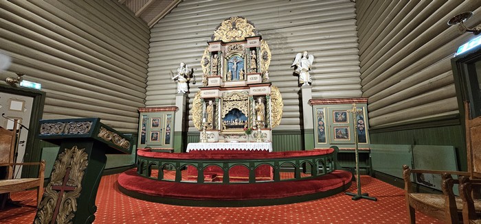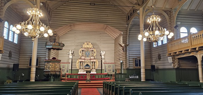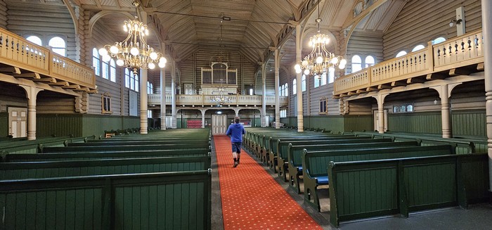 La deuxième plus grande église en bois du pays domine l’E10 au nord de Kabelvåg. Construite en 1898 pour accueillir les pêcheurs saisonniers, elle compte 1 200 sièges, soit bien plus que le nombre actuel d’habitants. L’église est impressionnante de l’extérieur, mais très simple à l’intérieur dans le style nordique.