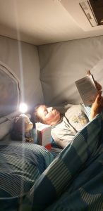 On va prendre au plus près du garage WW de la ville quitte à dormir sur le parking d’un camping. Mais que cela ne tienne apéro et soirée crêpes et mousseux pour penser à autre chose…